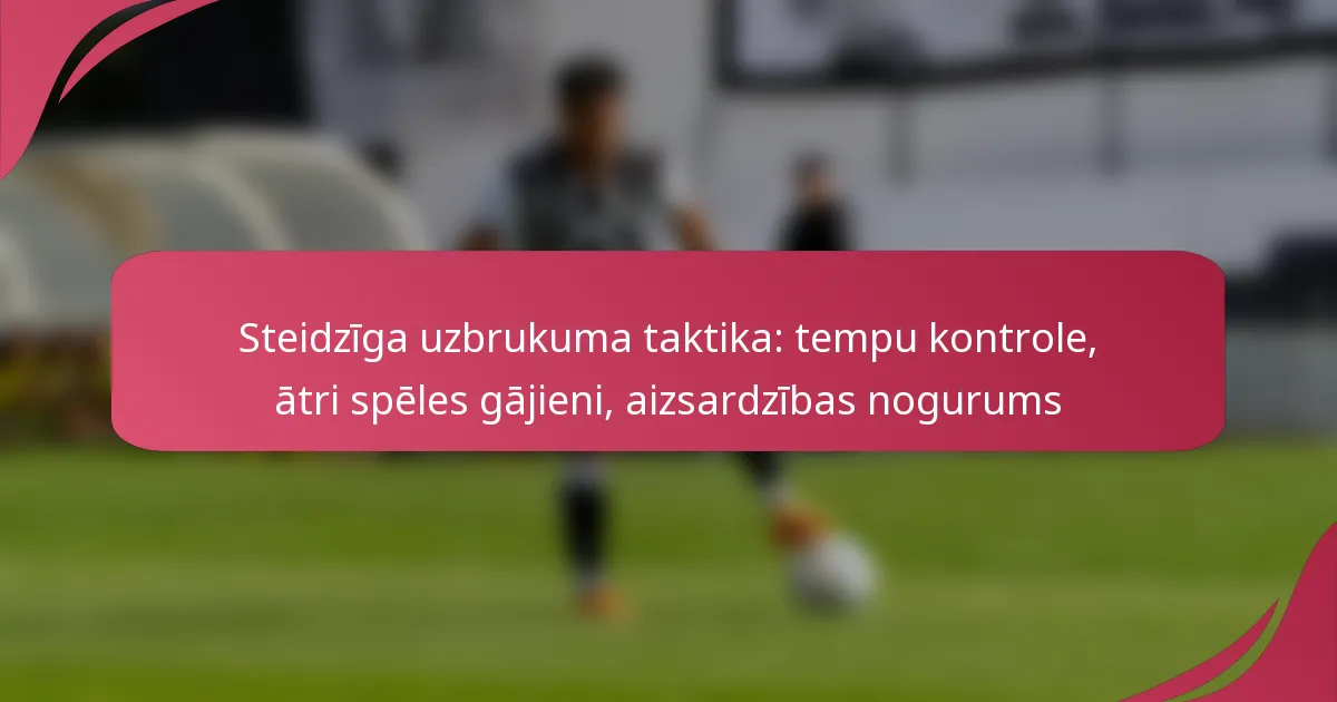 Steidzīgā uzbrukuma taktika ir dinamiska stratēģija futbolā, kas paātrina spēles tempu, ļaujot komandām izpildīt ātras spēles un nepārtraukti spiest pretinieku aizsardzību. Kontrolējot tempu, šī pieeja cenšas izmantot aizsardzības nogurumu un radīt izdevīgas situācijas, kas galu galā palielina punktu gūšanas iespējas un uztur uzbrukuma momentumu.