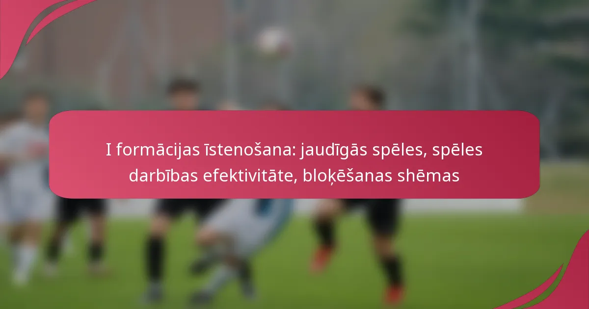 Efektīva spēles darbība I formācijā balstās uz precīzu izpildi, laiku un spēju maldināt aizsargus. Integrējot spēka spēles un izmantojot specifiskas tehnikas, komandas var ievērojami uzlabot savas uzbrukuma stratēģijas.