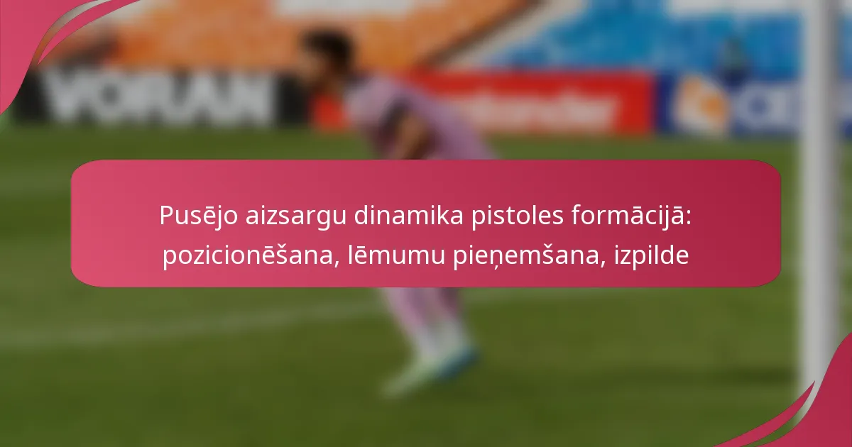 Kvartbaku dinamika pistoles formācijā ir saistīta ar stratēģisku pozicionēšanu, asu lēmumu pieņemšanu un precīzu izpildi. Optimizējot savu stāju un uzlabojot lauka redzamību, kvartbaki var efektīvi sazināties ar uzbrukuma līniju un pieņemt ātrus, pamatotus lēmumus. Šī formācija prasa novērtēt aizsardzības izkārtojumus un pielāgot savas spēles, nodrošinot veiksmīgas pārsūtīšanas un precīzus metienus spiediena apstākļos.